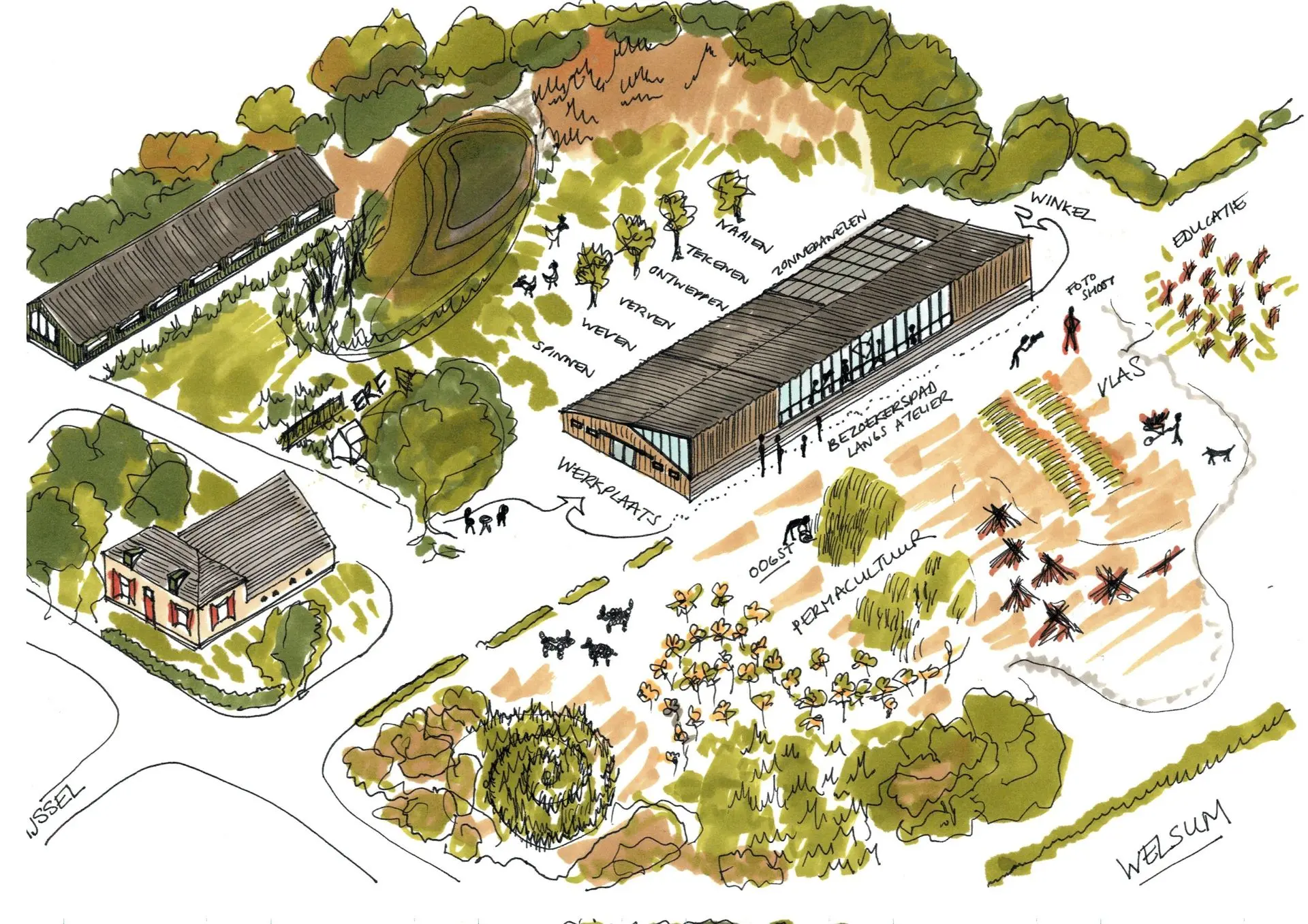 La-di-da design & architecture werkt aan de Fashion Farm van Joline Jolink. Een oude kippenschuur in Overijssel wordt getransformeerd tot werkplaats, atelier en showroom voor duurzame mode. Samen met Dijkhuis Ecobouw wordt de bestaande constructie maximaal hergebruikt en geïsoleerd met biobased materialen. Het absolute hoogtepunt: een bijna 300m² stampleem vloer met vloerverwarming uitgevoerd door stukadoorsbedrijf Euroleem, te realiseren in de lente van 2026.